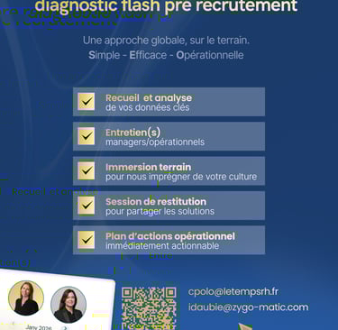 Un diagnostic pré recrutement c'est poser les bonnes questions et sécuriser chaque étape pour éviter les erreurs coûteuses qui compromettent 60% des recrutements.